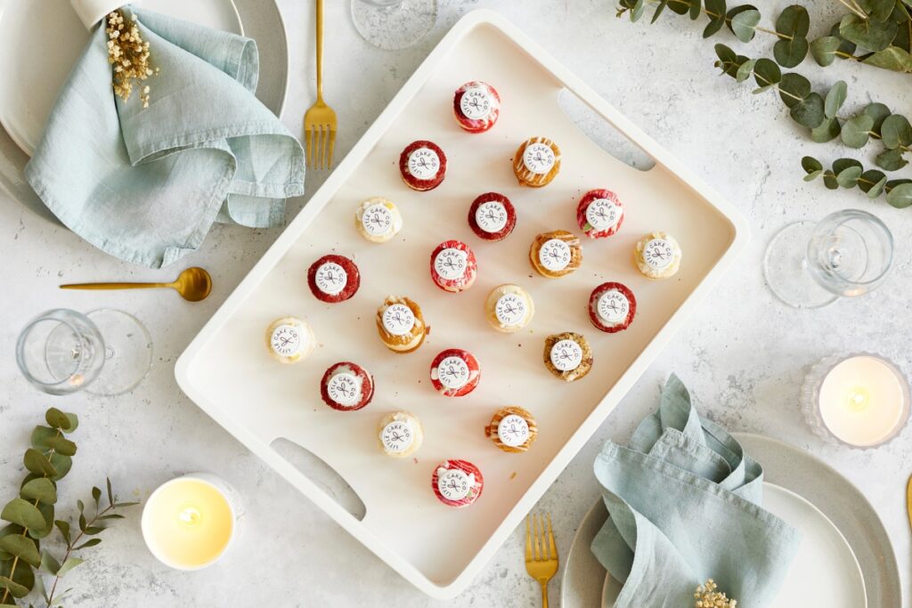 For corporate events, launches and client entertaining, we offer Logo Cakes as a considered sweet finish to a canapé-led spread. Created by our sister brand, Little Cake Co., each miniature sponge cake is finished with an edible logo, image or message, cleanly printed and carefully placed.
